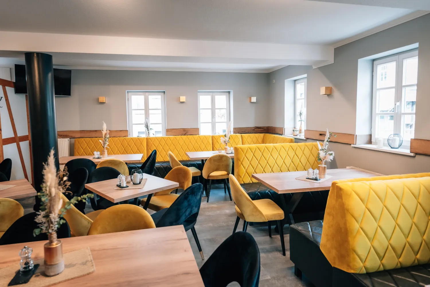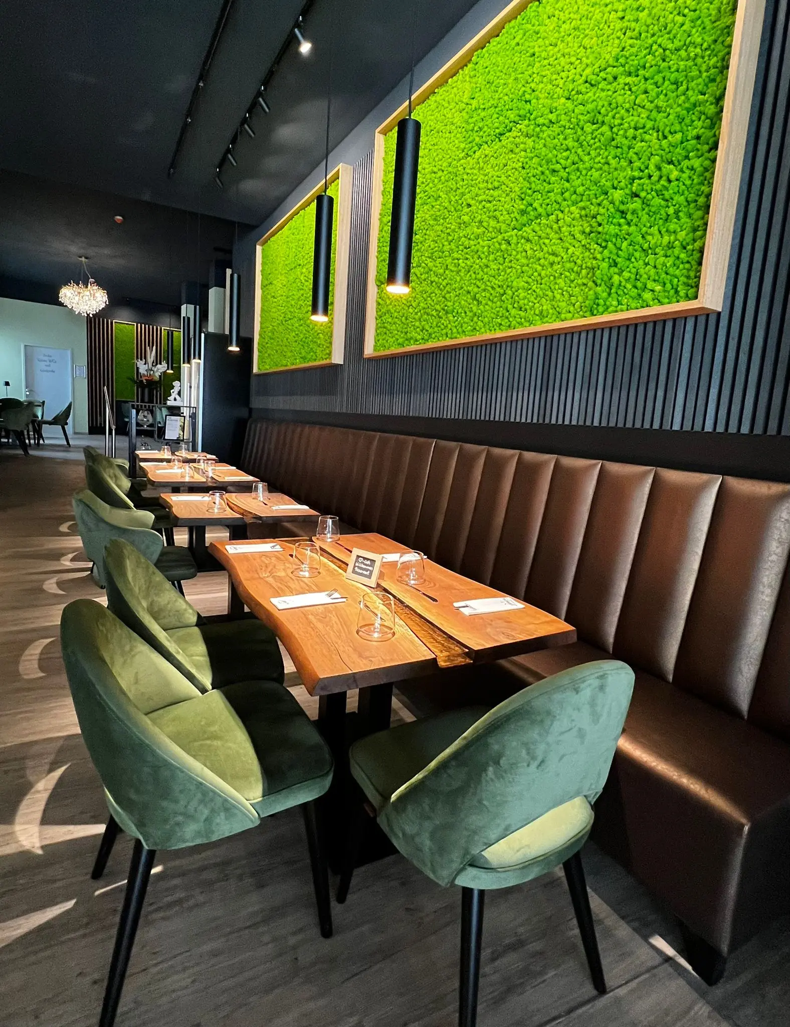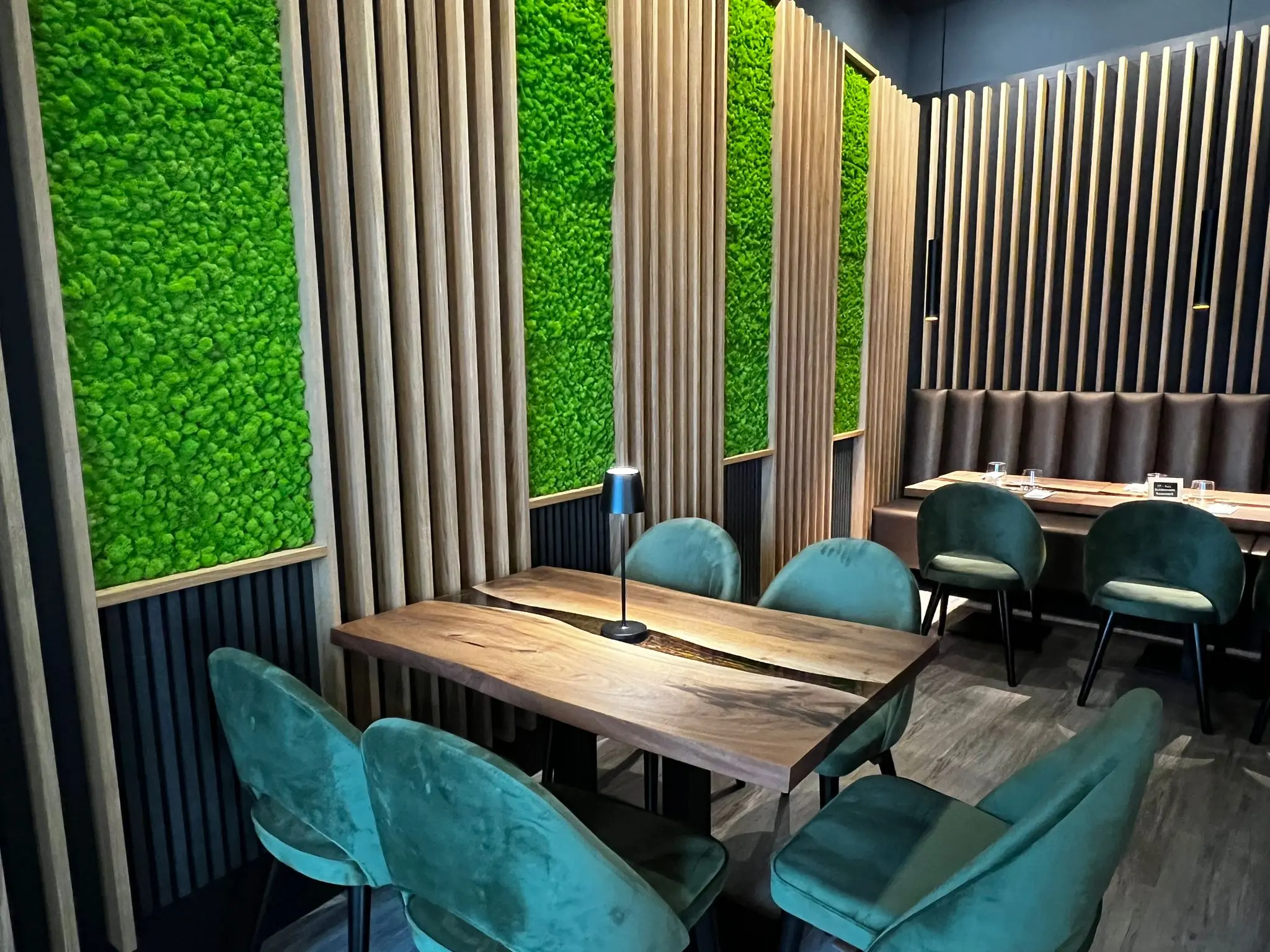Hinweis! Der Preis bezieht sich auf 1 laufenden Meter Bank. Die Kalkulation richtet sich nach gewünschtem Durchmesser & wird wie folgt berechnet: Beispiel für eine 3/4 Rundbank: (Durchmesser 250cm) Gesamtlänge 5,89m x 649,95€ = 3828,21€ Beispiel für eine 1/2 Rundbank: (Durchmesser 250cm) Gesamtlänge 3,93m x 649,95€ = 2554,30€Rundbank „Butterfly Deluxe“ – Eleganz in ihrer schönsten Form Die Butterfly Deluxe ist eine formschöne Rundbank mit aufwändiger vertikaler Steppung, die jedem Raum einen exklusiven Lounge-Charakter verleiht. Das geschwungene Design fördert nicht nur ein kommunikatives Sitzgefühl, sondern setzt auch visuell ein Statement in modernen Gastronomie- und Hoteleinrichtungen. Der hochwertige Polsterbezug, wahlweise aus Samt, Kunstleder oder Objektstoff, sorgt für ein luxuriöses Sitzgefühl. Die stabilen Füße aus Massivholz oder Metall bieten sicheren Stand und unterstreichen das edle Design. Besondere Merkmale: Rundbank mit eleganter Linienführung und vertikaler Steppung Maßanfertigung möglich – Länge, Radius und Polster frei wählbar Hochwertige Verarbeitung in eigener Produktion (Made in Germany) Ideal für Restaurants, Lounges, Empfangsbereiche und Hotel-Lobbys Komfortable Polsterung & ergonomische Rückenlehne